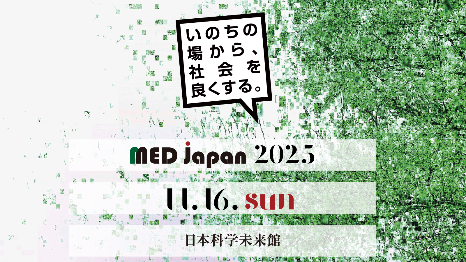 「いのちの場から、社会を良くする」を出発点に、2009年から開催を重ねてきたMEDはこれまでに500人近いプレゼンターを世に送り出してきました。振り返るとそこには「いかに生きるか」という問いが個々にありました。2025年のMEDは「人生100年時代 新しく、生きる」をテーマに掲げます。大きな変革の時代を生きるわたしたちが、これまでを省み、これからを見据えるために、このテーマが有効だと考えたからです。
