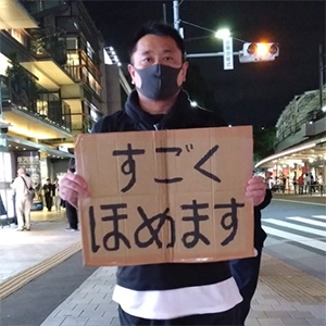 私、褒めますおじさんの活動は家も家族もお金も何もないところから始めました。何故そのような状況になっていたかというと好き勝手生きてきたからです。もちろん世間的にはそんな状態の人は白い目で見られるような存在だと思います。しかしどうせここまで好き勝手生きてきたんだからとことん好き勝手やってやろうという思いになり昔からやってみたいと思ってた路上でのパフォーマンスをやろうと思いました。その中でも今すぐに自分でもできて嫌な気持ちになる人も少ないなと思ったのが人を褒めるということです。始めてみると色々な方に出会い気づけばもう4年やっております。この4年あっという間って感覚、それほど楽しく過ごせてきました。こんな何もかも失ったおじさんでも好き勝手生きて何とか楽しめてます。色々な環境とかあって自分の好き勝手するのは難しい状況の方がほとんどだとは思いますが少しでも自分に自分を捧げる人生が過ごせてもいいんじゃないでしょうか。